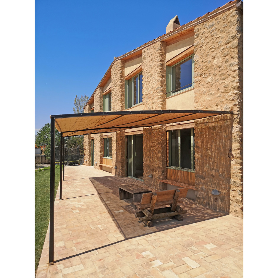 Es va optar per conservar i posar en valor els murs de pedra originals, testimoni de l’arquitectura tradicional de la zona, tot complementant-los amb una intervenció contemporània respectuosa, funcional i acurada. La nova construcció manté l’essència de l’edificació original, amb una volumetria simple i una materialitat coherent, que contribueix a la integració del projecte en el seu entorn immediat.