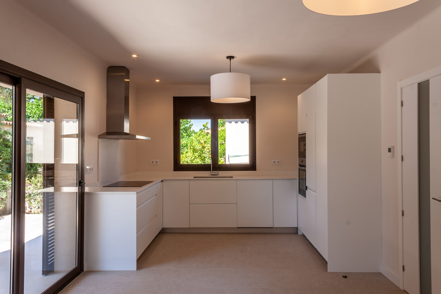 El garatge, inicialment desconnectat de l’habitatge, s’integra en la nova proposta per tal de guanyar funcionalitat i comoditat. També es redefineixen els porxos amb pilars de pedra natural i es resol la tanca perimetral amb fusteria metàl·lica, que aporta privacitat sense renunciar a la llum. El resultat és un habitatge renovat, acollidor i eficient, pensat per adaptar-se a les necessitats actuals amb qualitat i confort.